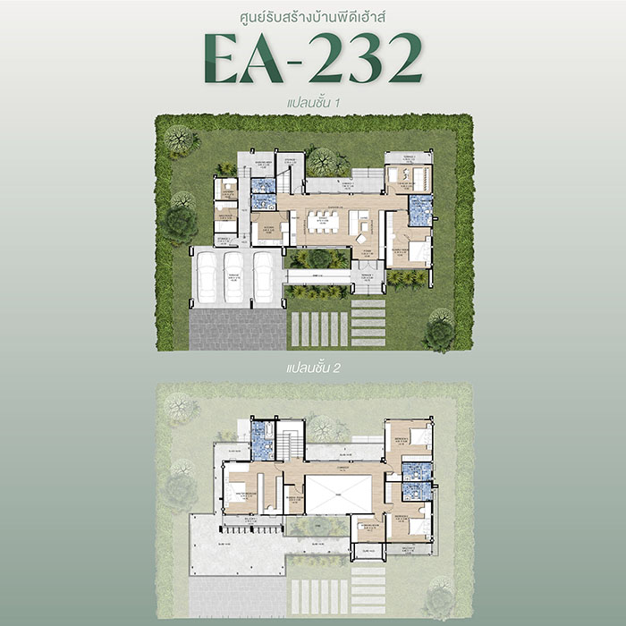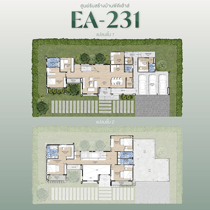 ประกอบด้วย 4 ห้องนอน 6 ห้องน้ำ ที่จอดรถ 3 คัน